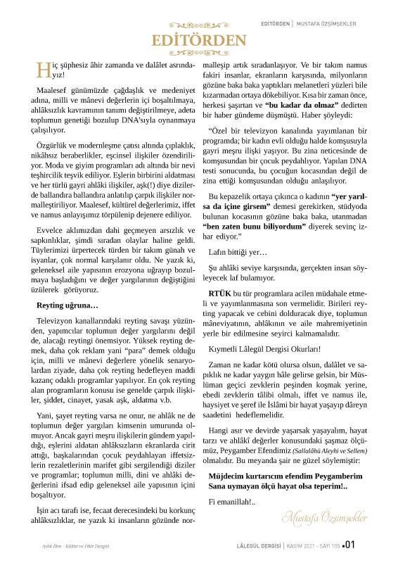 Bu sayı01/11/2021 -30/11/2021 tarihleri arasında yayınlanan sayıdır.